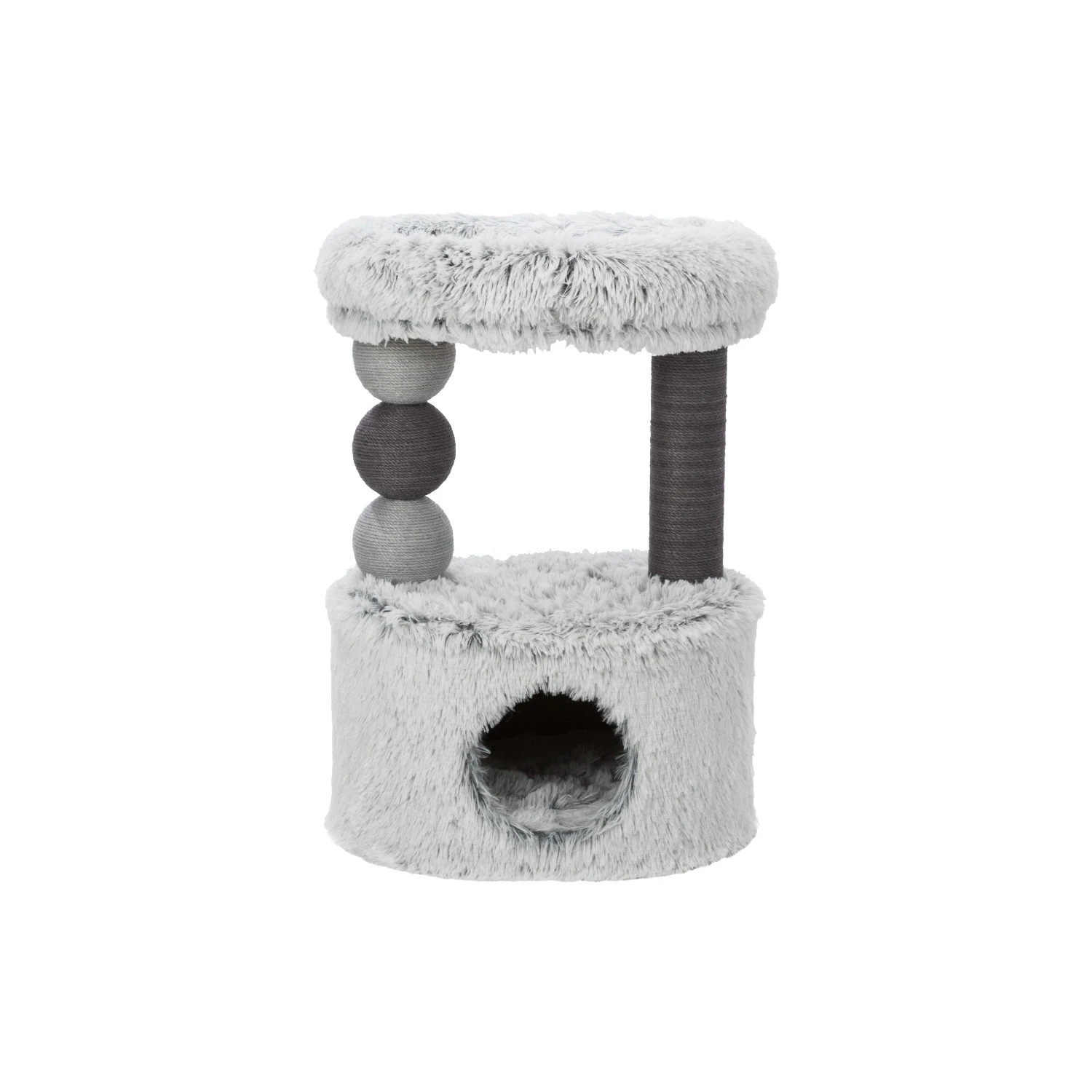 Are you looking for fancy scratching furniture that doesn’t take up too much place? Then the Harvey Scratching Post from Trixie is exactly what you need! This cat scratcher is covered by a soft plush material, which means your cat will be incredibly comfortable when curling up on one of the platforms! The post and balls are made of jute to satisfy all your cat’s scratching needs. The little cat cave also offers your cat a place to hide or sleep.
